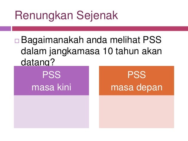 Pengawas PSS akan berucap tentang tajuk atau buku yang menarik selama 3 minit. Maklumat Pusat Sumber Sekolah. Multimedia dan pelayanan kebutuhan sumber bahan ajar lainnya.